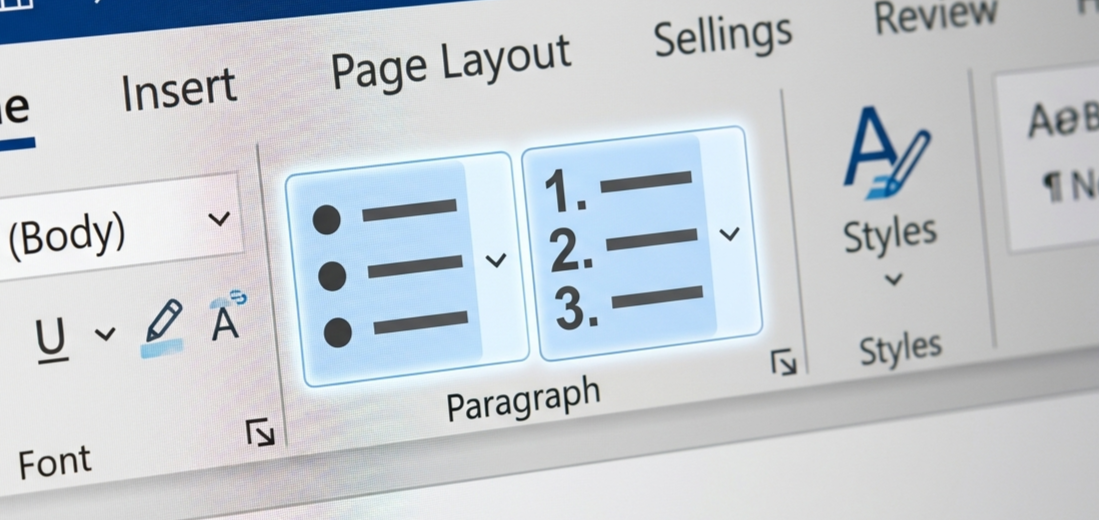 A very common mistake is creating lists with regular keyboard characters, alt codes, or manually typed numbers instead of using the actual list tools.